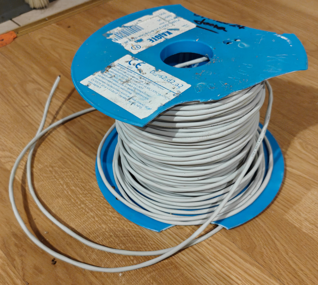 Kaapeliakin ostin jo valmiiksi. Halvinta mitä löytyi paikallisesta liikkeestä, 0.75€/m