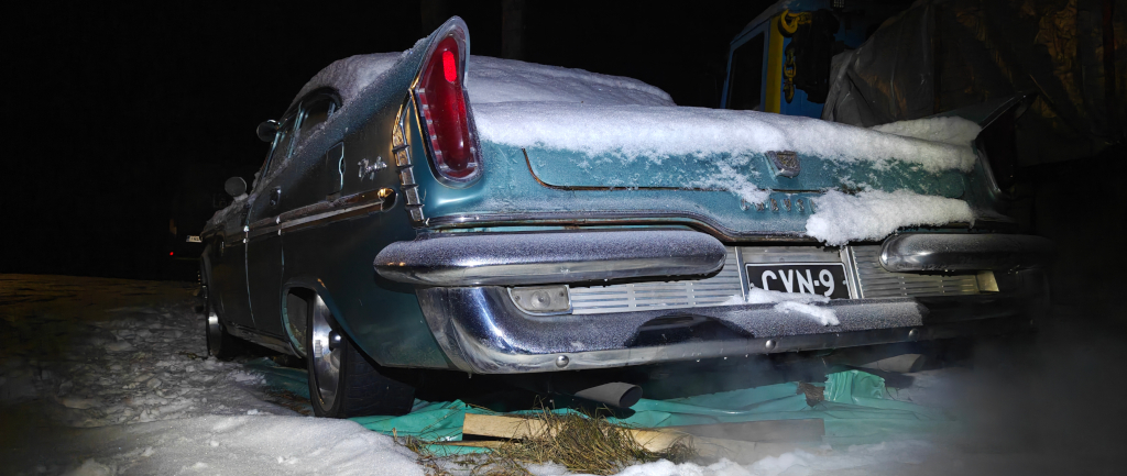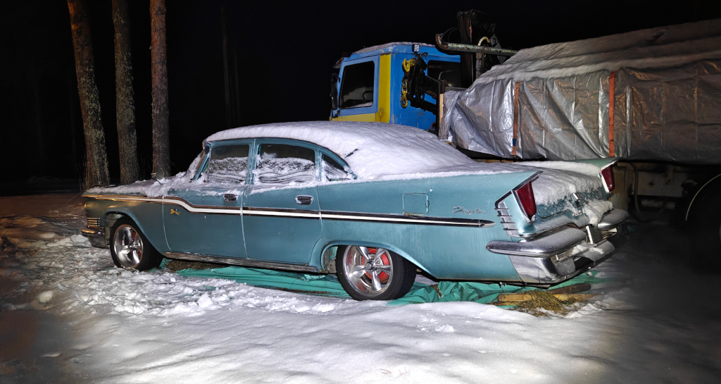 Säilynyt kohtalaisessa kunnossa syksyn ja alkutalven. Eipä kyllä olisi ollut aikaa tehdä autolle mitään nyt, mutta olisihan tuo kiva kuitenkin säilöä pikkusen fiksummin kuin taivasalla, nurmikolla... Onneksi sentään pressu alla