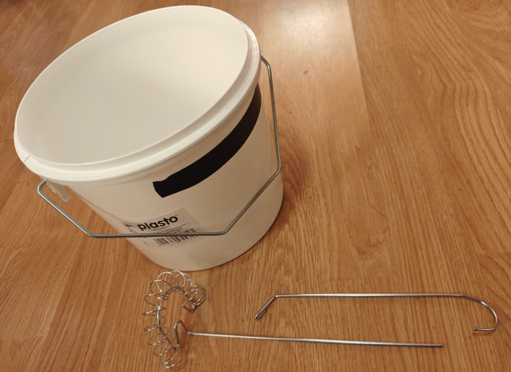 Halpahallista 3 litran sankko, ja keittiöstä vanha vispilä jonka varren katkasin