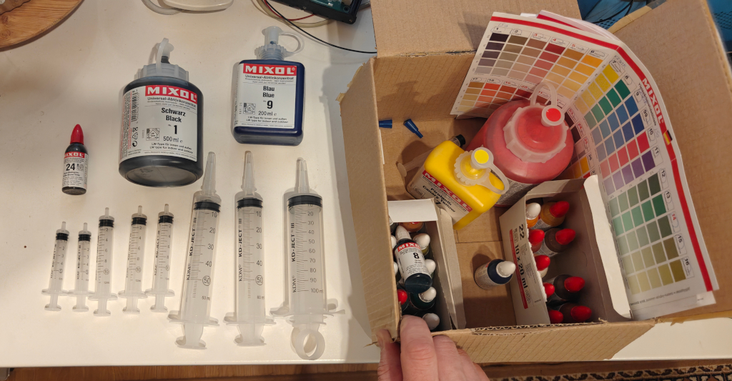 Ostin Mixol maalin sävytyspastoja.